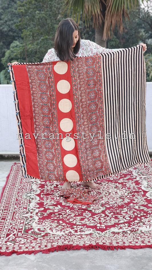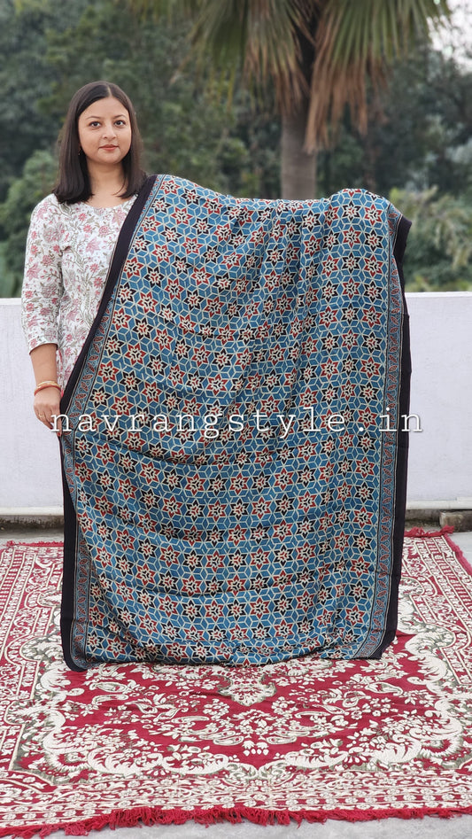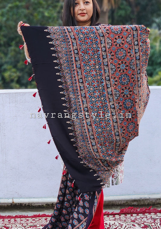 "Rang-e-Nazaqat" – Handcrafted Ajrakh Modal Silk Saree