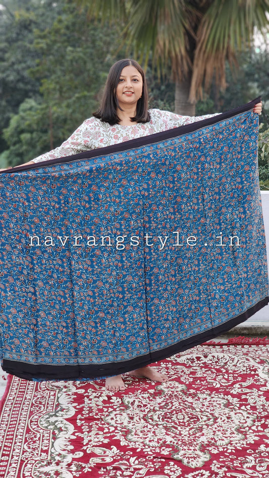 "Neel Kamal" – Ajrakh Handblock Modal Silk Saree