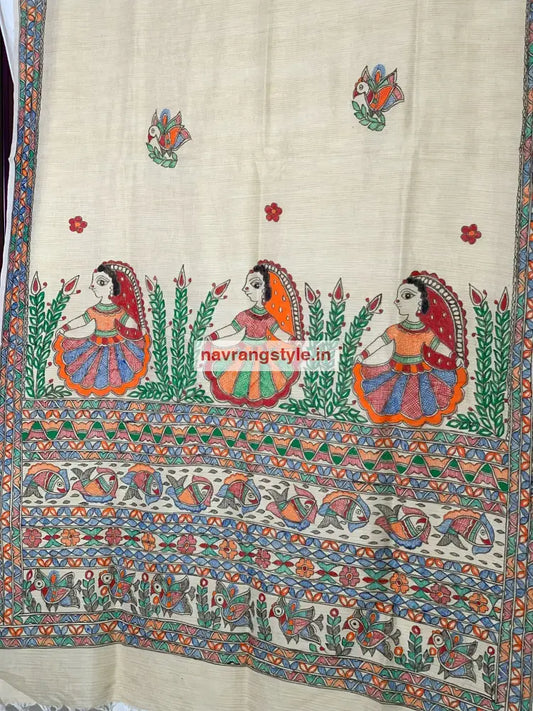 Bahinpa- Madhubani handpainted Cotton Dupatta
