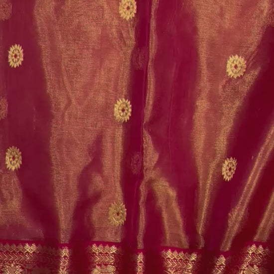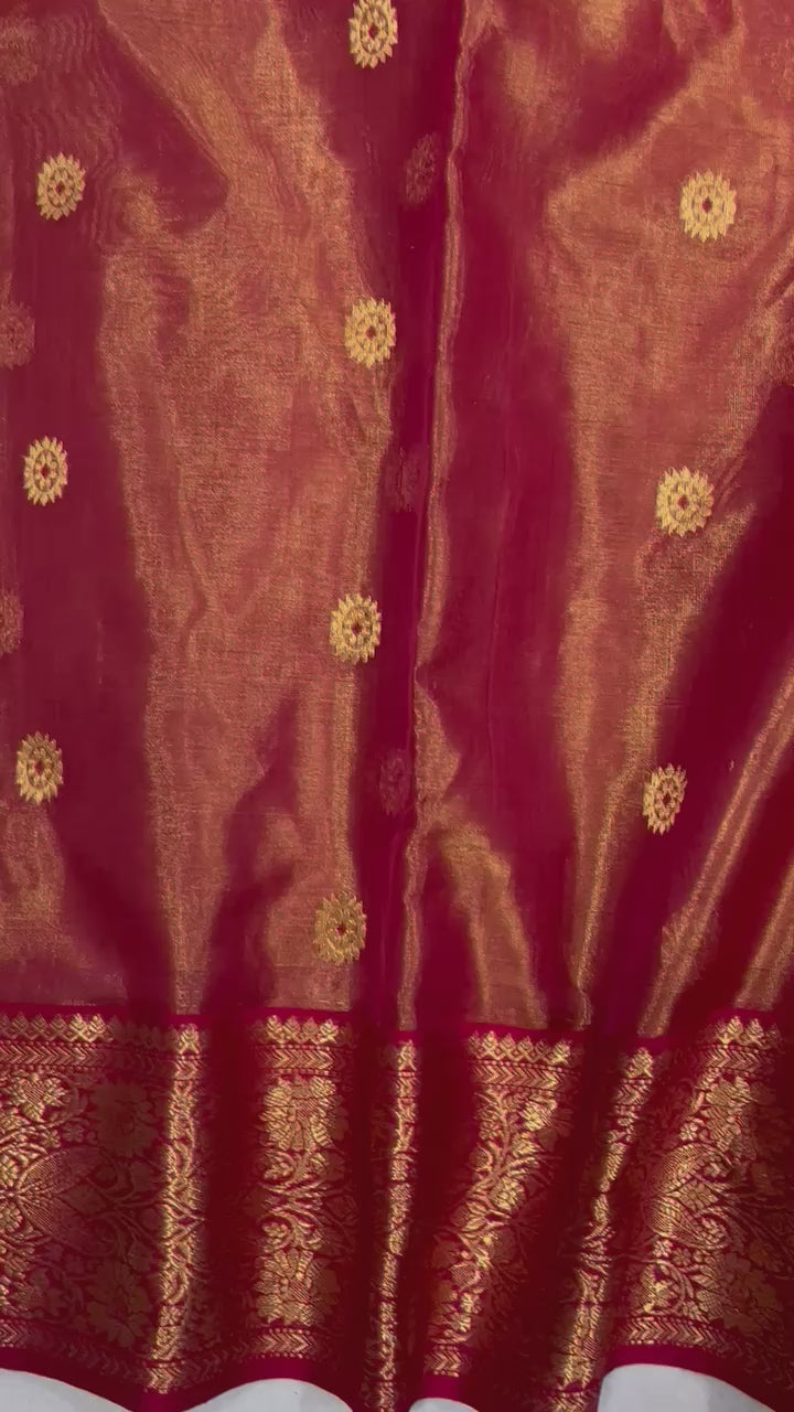 Golden Red Dual shade Tissue Katan Chanderi Saree