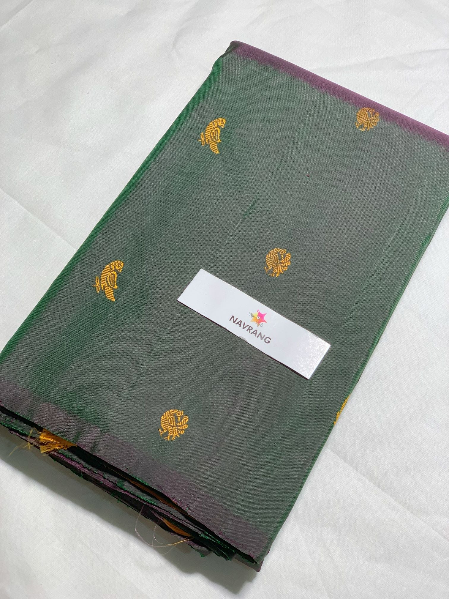 Dual Shade no Zari Pure Silk Kanjivaram Saree
