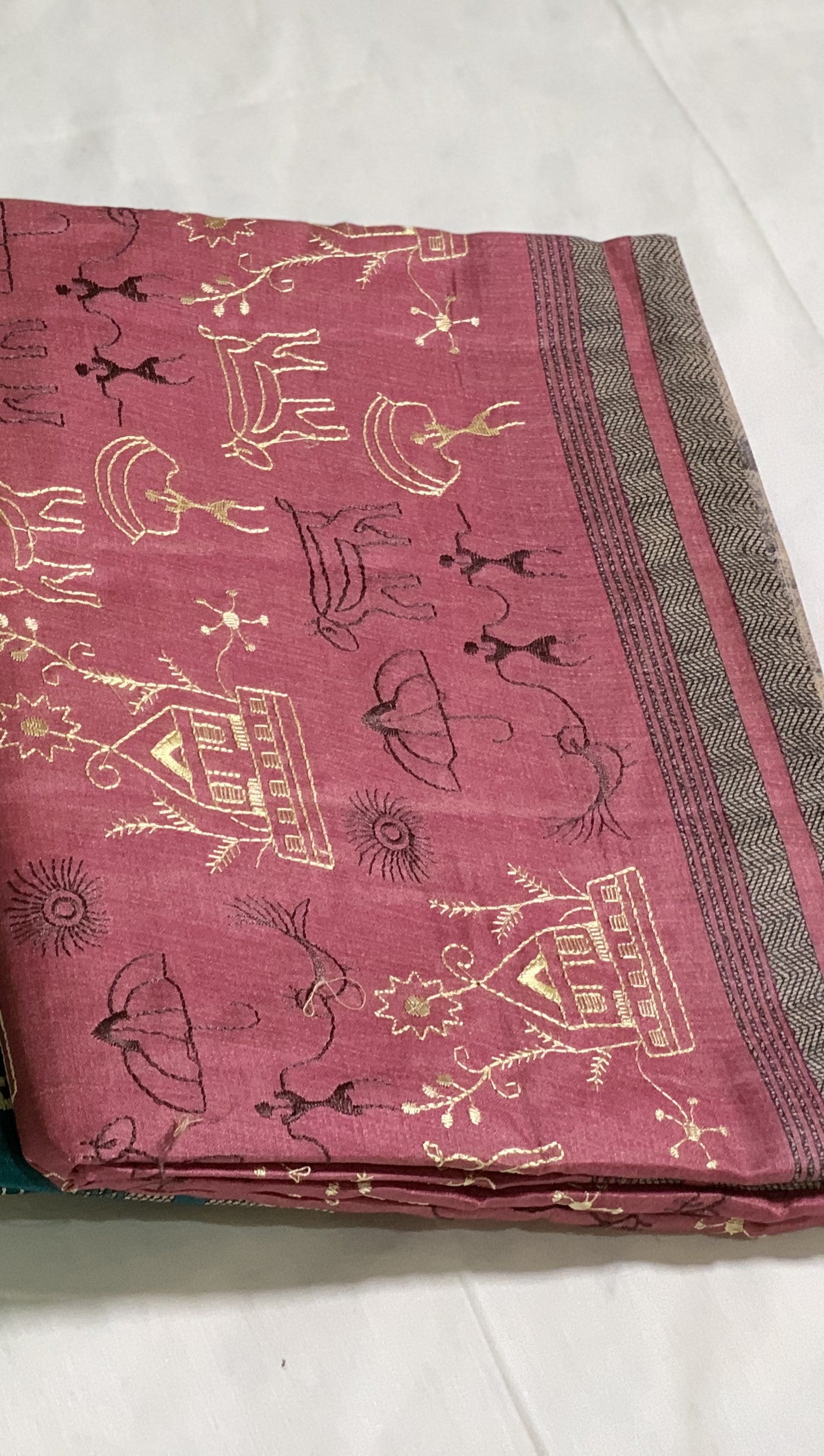 This embroidered saree is a perfect blend of traditional tribal embroidery and modern comfort. Made with a mix of viscose and cotton, This beautiful Saree offers a soft and comfortable feel for daily wear. Elevate your style with this versatile and stylish saree.