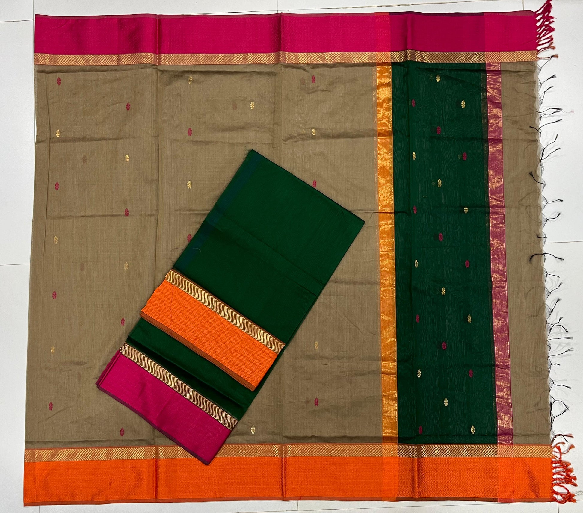 Unstitched Maheshwari Silk Cotton set of 2 - Kurta fabric and Dupatta. Maheshwari suit fabric is known for its soft feel and comfortness.