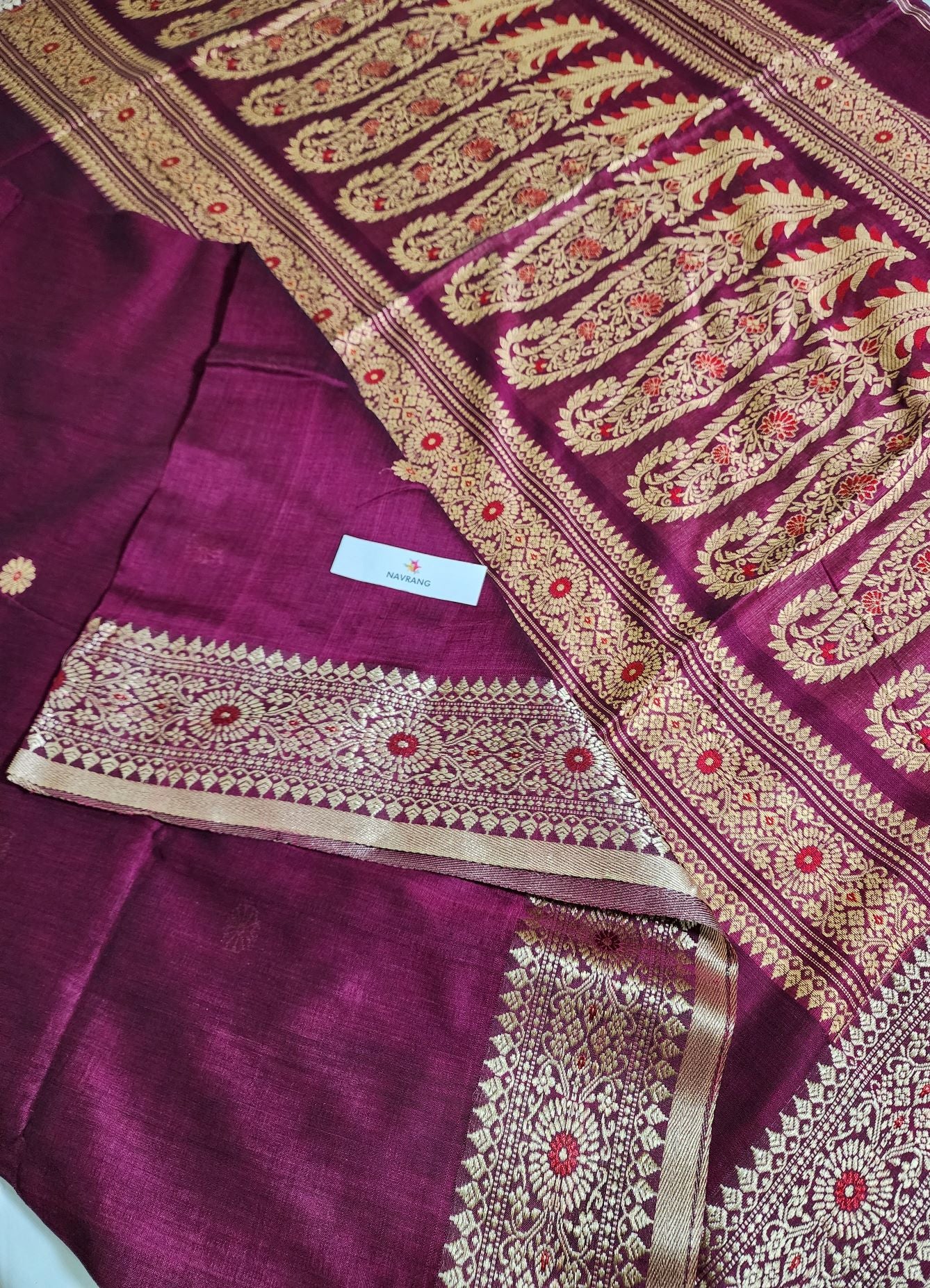Expertly crafted from pure cotton, this magenta saree is a handloom masterpiece. The fabric is incredibly soft and comfortable, with no stiffness from starch. The beautiful border adds a touch of elegance. Please note, due to photography, there may be slight color variations.