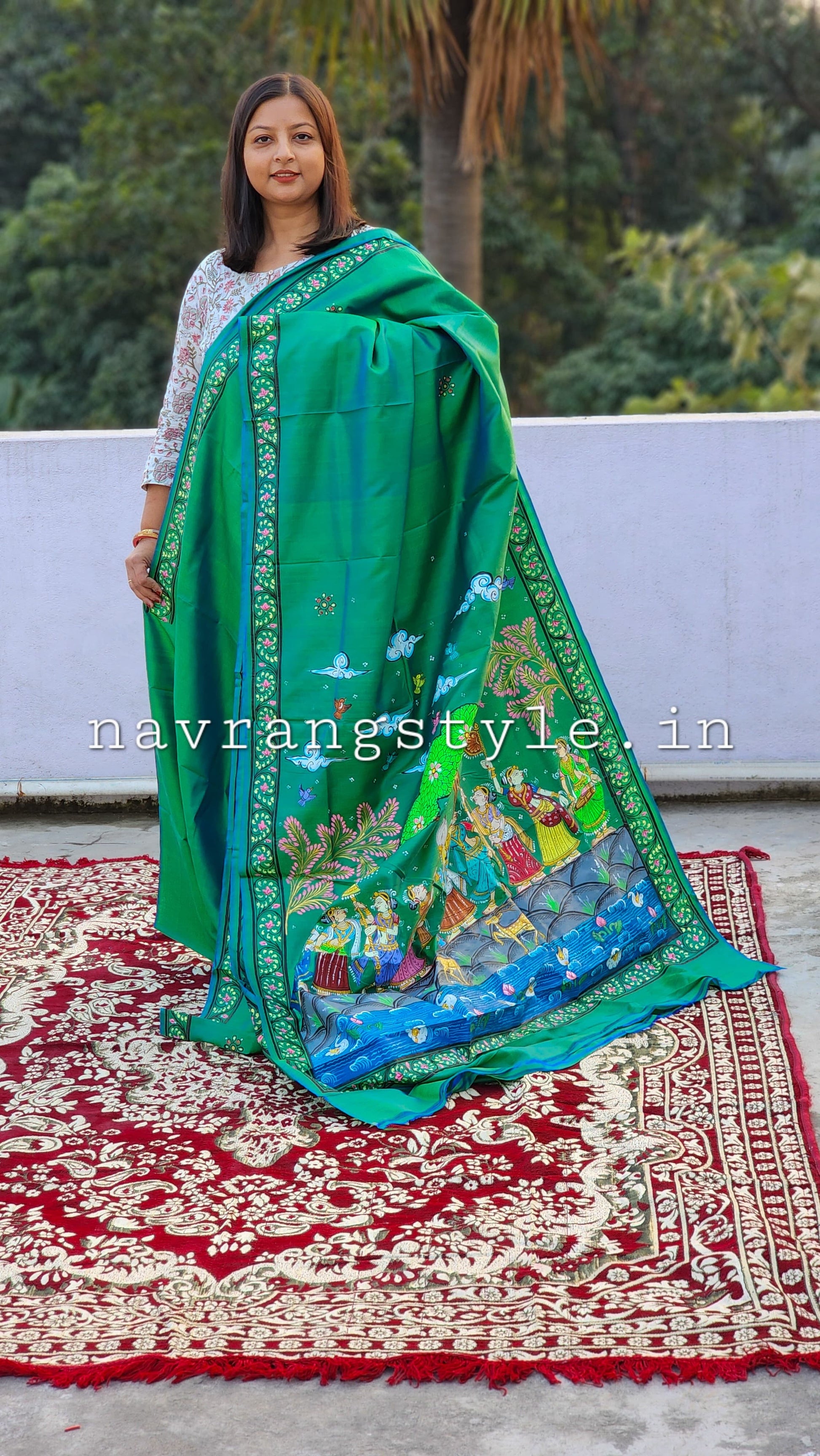 Raasleela Pattachitra Silk Saree-Green