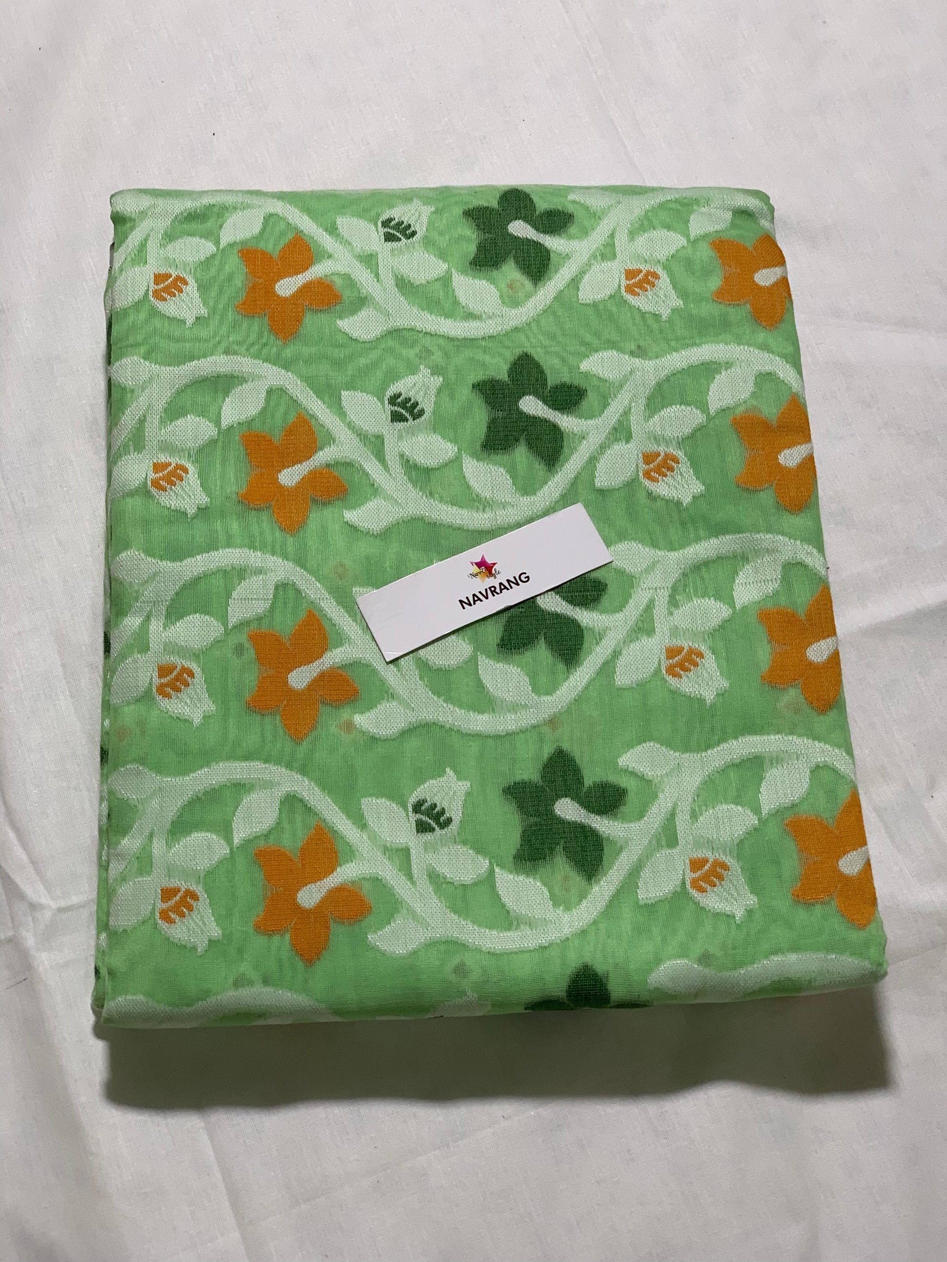 Experience the finest handloom craftsmanship with our Soft Cotton Saree. Made with expert techniques of Bengal Handloom, this light blue saree is not only incredibly soft but also versatile for all seasons. The cotton weft and mix cotton warp makes it very comfortable for all agegroups.