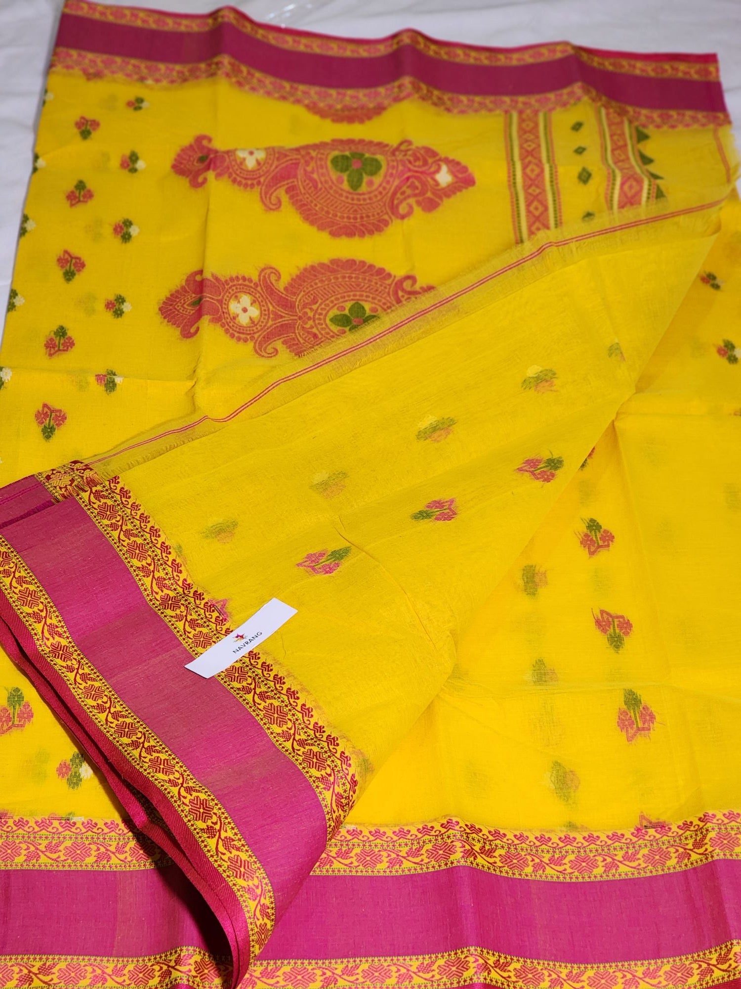 Experience the timeless elegance and comfort of our Bengal handloom tant saree. Perfect for daily wear or any occasion, this evergreen piece is crafted by skilled weavers with a focus on quality and comfort. A must-have in every wardrobe, this saree is a great gift for moms and grandmothers. Bring home a piece of tradition and comfort with our Tant Saree.