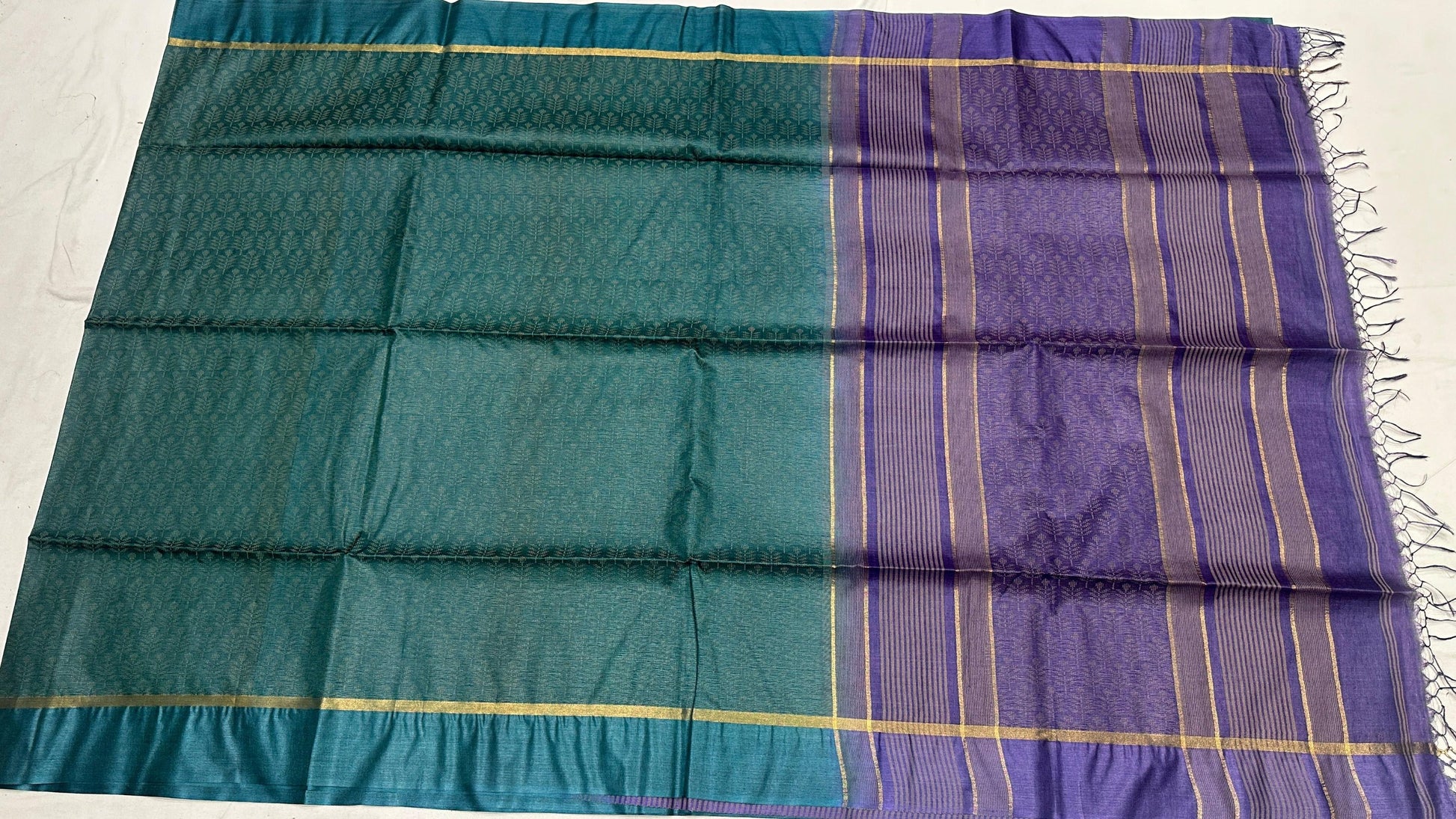 This elegant tussar saree from our Navrangstyle collection features woven design and a contrasting blouse fabric, bringing a touch of class to any occasion. Made with care and attention to detail, this saree offers both comfort and style in one stunning package.